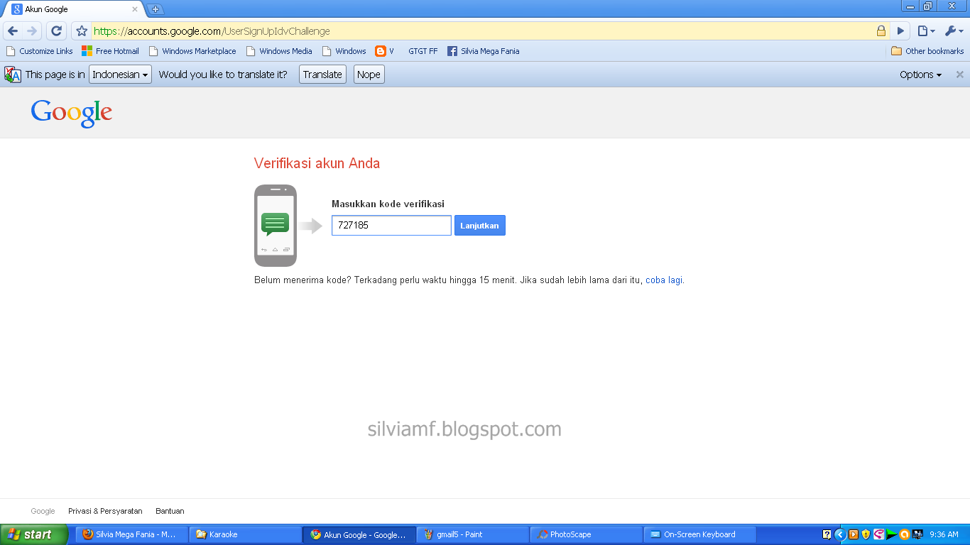 Masukkan kode verifikasi yang sudah tim gmail kirimkan ko nomor handphone anda, klik lanjutkan